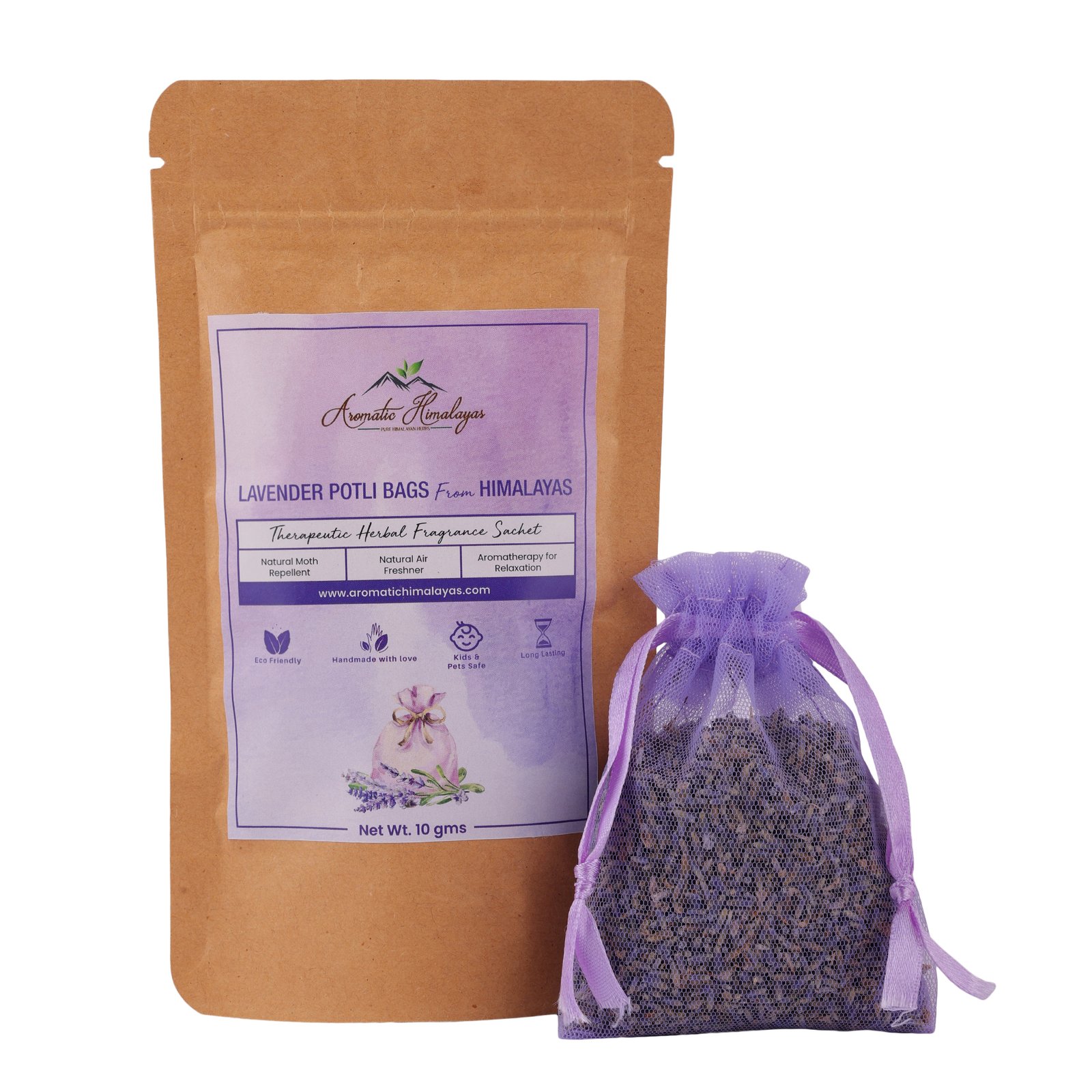 Aromatic Himalayas- Lavender FRAGRANCE SACHET | Dried Lavender Potli Bags | For Drawer and Wardrobe | Natural Moth Repellent | Air Freshener | Aromatherapy for Relaxation | 10 gm