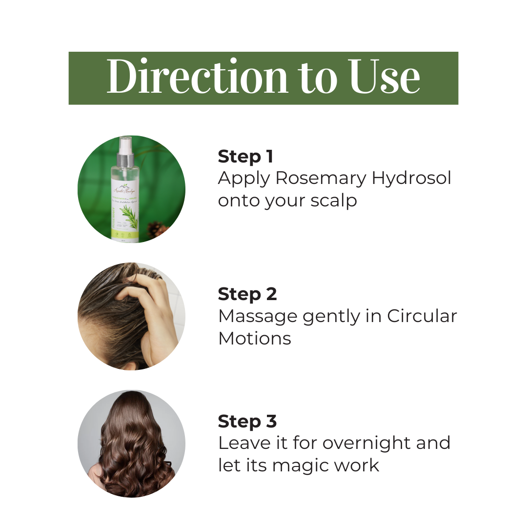 💆♀️ Promotes Hair Growth: Rosemary hydrosol stimulates blood circulation in the scalp, encouraging hair growth and reducing hair loss.