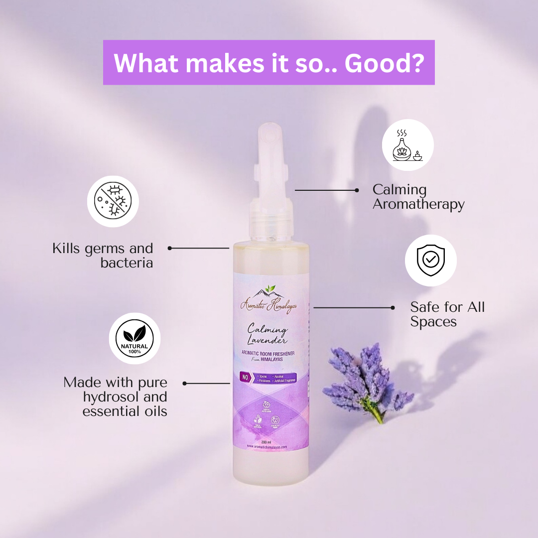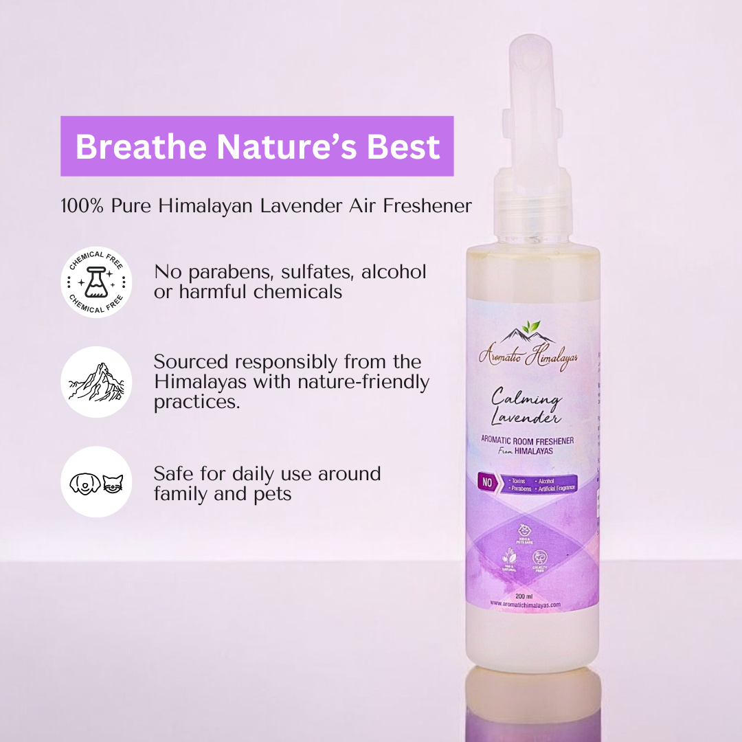 Aromatic Himalayas | Room Air Freshener | Calming Lavender | Pure and Natural Ingredients | Lavender Essential Oil and Hydrosol | 100% Water Based | Alcohol-Free | 100ml